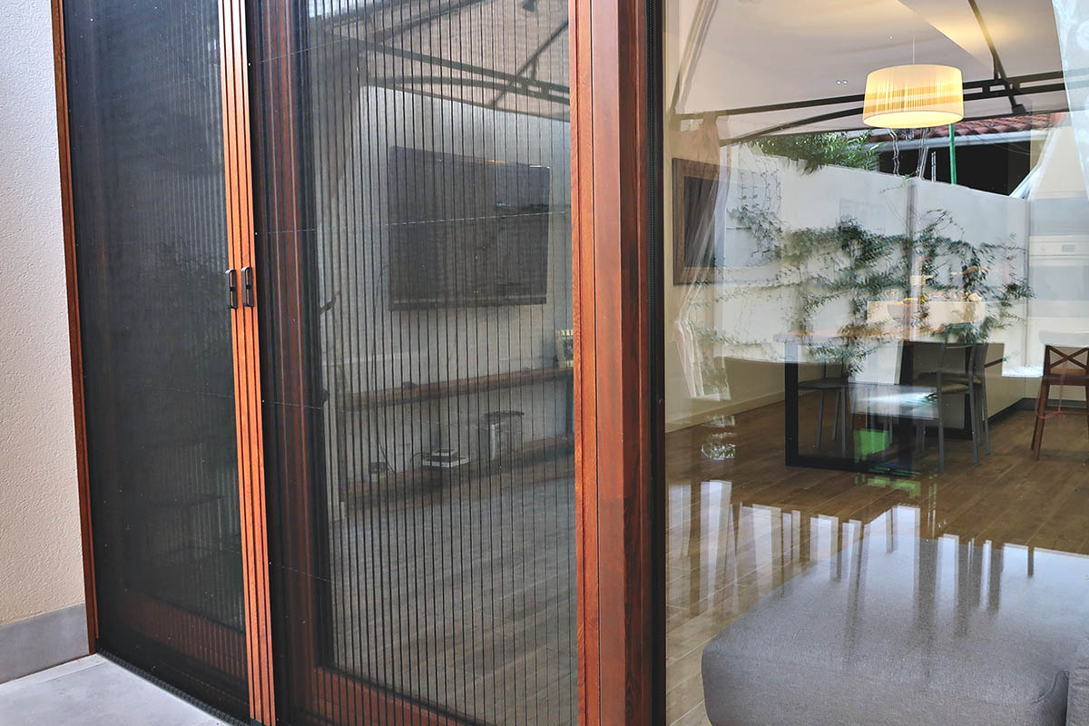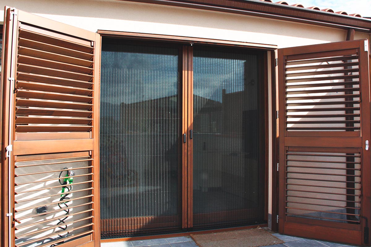 De manera complementaria, hemos instalado mosquiteras y persianas de madera de lama móvil con el mismo barniz y acabado que las ventanas instaladas.